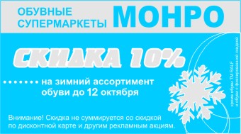 На ВЕСЬ ассортимент летней обуви предоставляются скидки! Средний процент скидки на обувь составляет 20%. Вы сможете приобрести понравившуюся Вам обувь по более низкой цене!