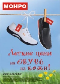 С 8 апреля 2013г. во всех магазинах обувной сети «Монро» действует акция «Легкие цены на обувь из кожи»!