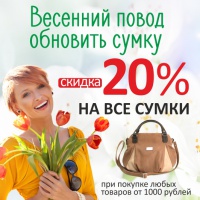 Только до 31 мая 2016 года вы можете получить скидку 20% на сумки при любой покупке от 1000 рублей!