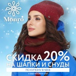 Скидка 20% на шапки, снуды и палантины по купону в чеке!