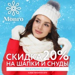 Скидка 20% на шапки и снуды по купону в чеке!