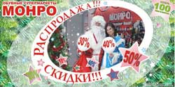 С 10 декабря началась традиционная зимняя распродажа в МОНРО, на весь ассортимент обуви, кожгалантереи, одежды и белья покупателям предоставляется дифференцированная скидка до 50%.