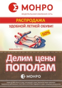 Первая половина лета едва завершилась, а «Монро» уже делит цены пополам!* Приятно, что сейчас только середина сезона, и Вы успеете насладиться новым летним обувным гардеробом!